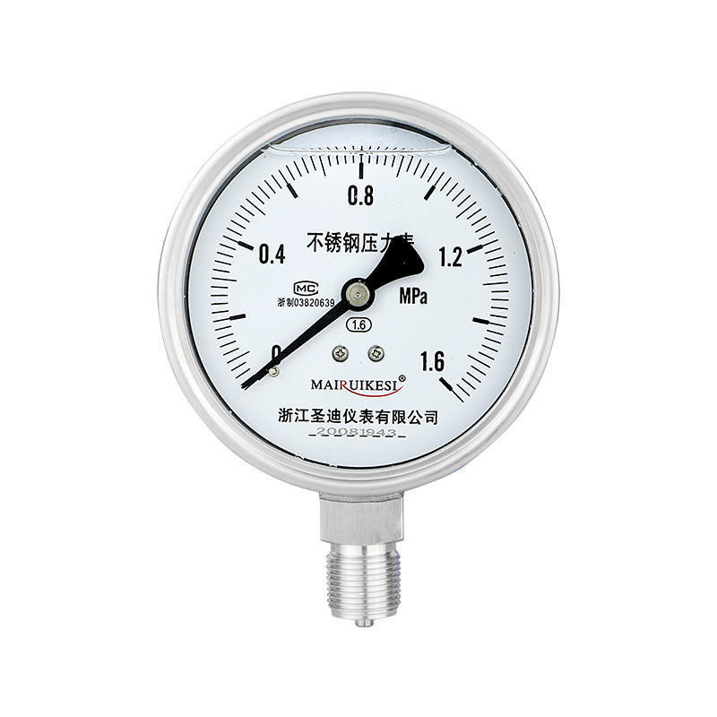 Casa > produtos > Medidor de pressão de aço inoxidável > YN100BF 304ss Medidor de pressão de aço inoxidável 0,1-250mpa 0,6% Manômetro de precisão